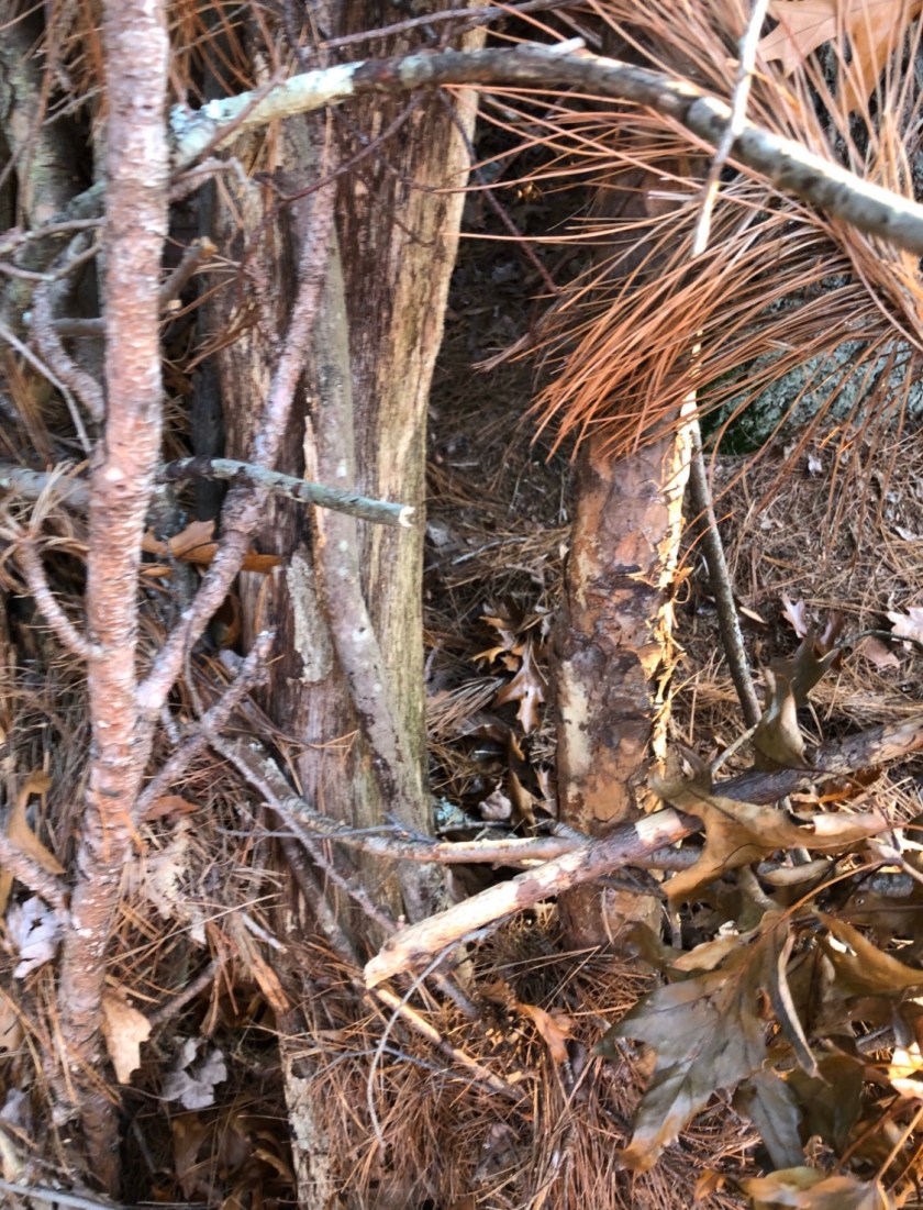 So, you’re walking along and stumble on to this. What do you do? First thought in my head would be, “Whoop I found the Bigfoot Jackpot!” But did I? Is he really going to put a nest right where we could find it? If he just migrated through for the first time? Possibly, but if they’ve been around the area before I would think they would know our footprints and smells and traffic patterns.