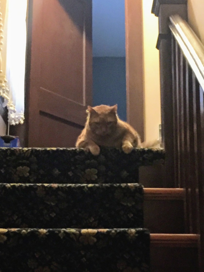 I texted my sister about the extra activity happening upstairs and she told me that Cody makes a lot of noise using the cat box because of his size. Really? The cat? Nope. But I brushed it off and went to sleep. Second night though? That was not that darn cat!