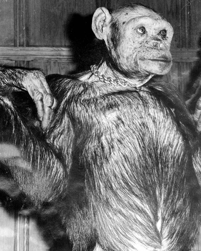 Then, in the 1970s came Oliver. Oliver made the term “humanzee” a household name. Oliver had come at the wrong time in the wrong place, because everyone wanted to be famous for finding bigfoot, or the missing link. He had a very unstable life getting bounced around from a genetics lab, to an enchanted Village theme park, then off to a wild animal training center, he then spent 9 years in the Buckshire Corporation confined in a small cage and finally to Primarily Primates a sanctuary for primates. It changed owners and name but he remained there till his death in 2012 , he died with his female chimpanzee companion Raisin by his side.