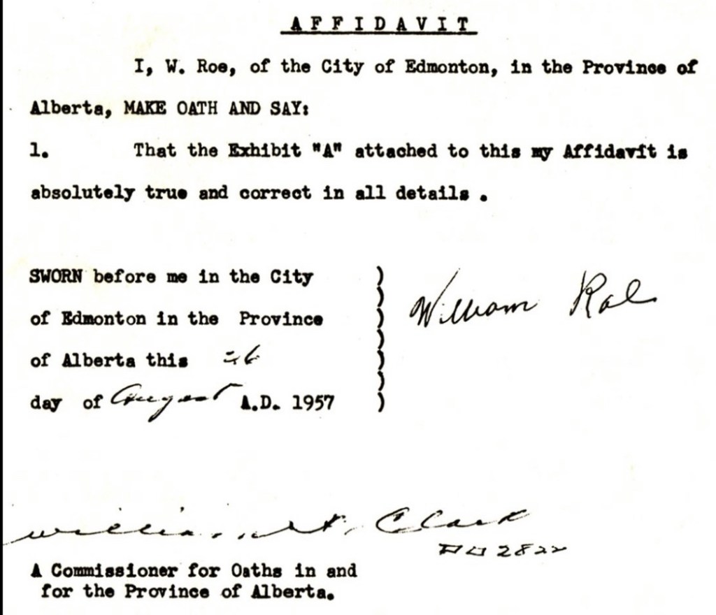course not. Yet he did swear out an affidavit in Canada to the truthfulness of his story. John Green, who was one of the first journalists to research William Roe’s story was very impressed by this. As a Canadian himself Green believed this was no small matter. Not something taken lightly in